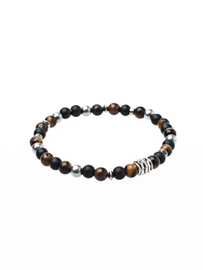 Bracelet élastique homme avec billes semi-précieuses oeil de tigre Arnaud 11 Printemps-été 2023 Kara Bijoux