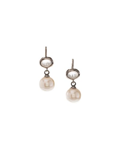 Ornées de cristaux Swarovski® de forme goutte (11 mm) de couleur cristal, argent sterling (.925), chaîne à enfiler en argent sterling (plus courte d’un côté).