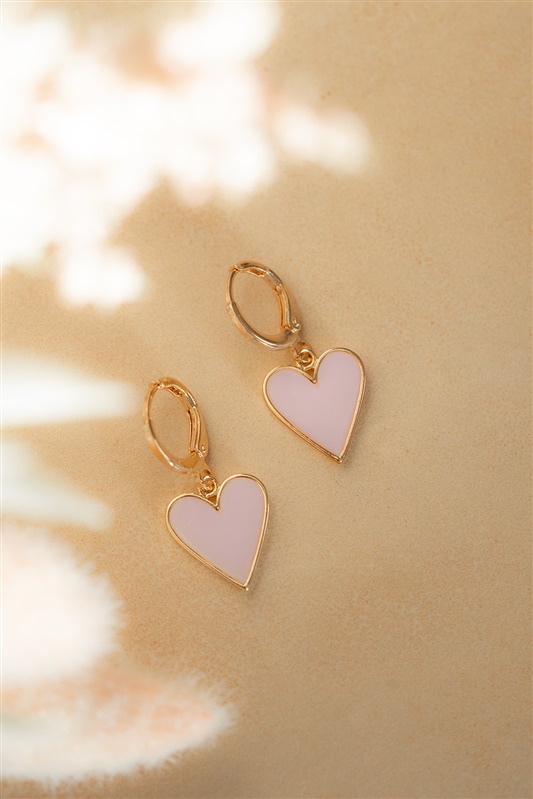 Or rempli 18K + placage or (dormeuses rondes 12 mm*), placage or 14K avec émail de couleur violet pâle (coeurs 12 x 14 mm).