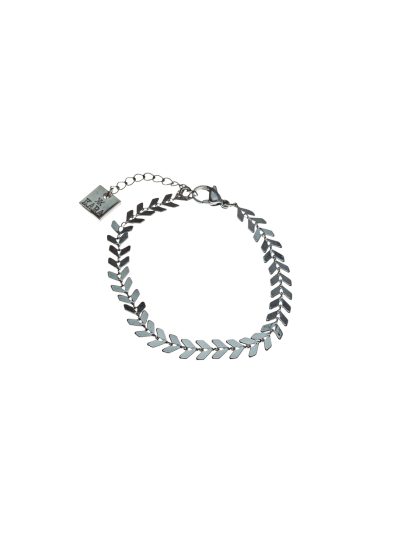 Cuir tressé brun, acier inoxydable (fermoir magnétique).
