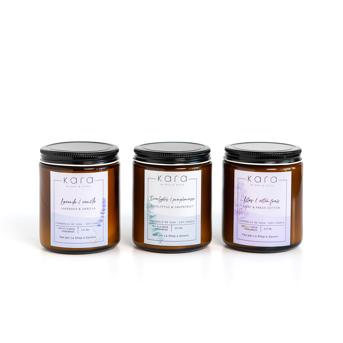 Celle-ci fait partie de la nouvelle collection de chandelles KARA. Une collection avec des fragrances exclusives! Un mélange de lavande et de vanille qui calmera votre esprit et mettra un baume sur votre coeur à coup sûr. Quantités limitées. Ne manquez pas votre chance!