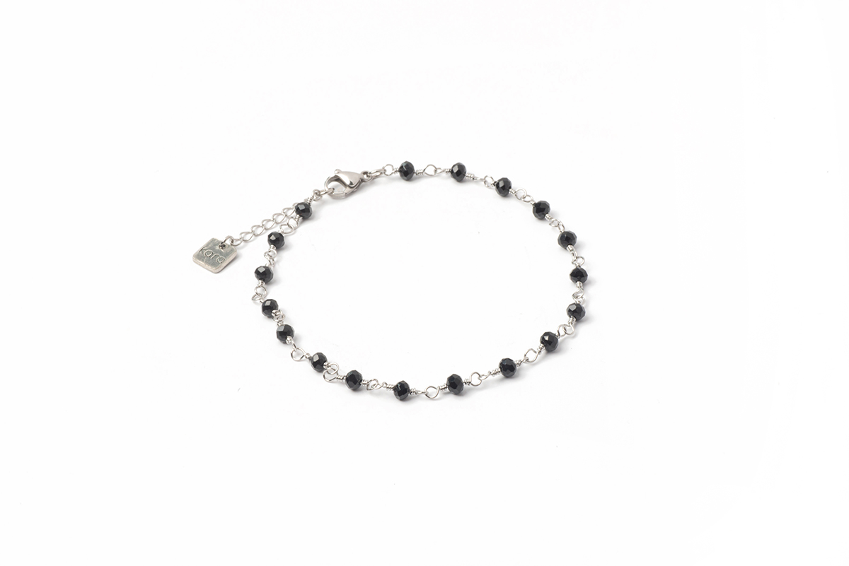 Acier inoxydable, cristaux facettés de couleur noire 4 mm, placage de ton nickel (breloque Kara).