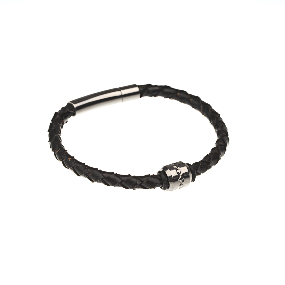 Bracelet cuir noir avec bille travaillée